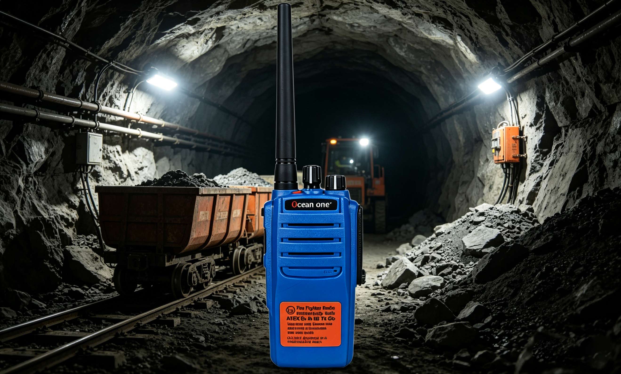 - 井下岩层遮挡严重,选大功率数字对讲 + 长天线,搭配漏缆、中继扩大信号覆盖,消除通讯盲区。